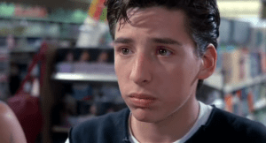 A little later Gary has the opportunity to give Karen a ride to school in his pink station wagon. They talk for a bit. They connect a little and he thinks he finally has an in with Karen. It’s incredibly sad to watch. He’s the loneliest guy on Earth and the girl he has decided to fall in love with is just being friendly with him. He is so cut off from girls that genuinely platonic friendship is drastically misread as genuine sexual interest.