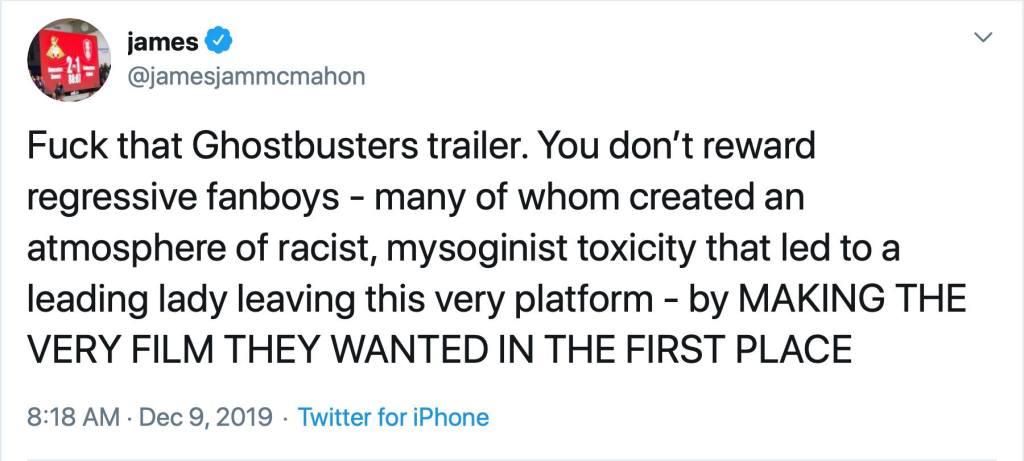 to state it another way, Paul Faggy intentionally made a version of Ghostbusters which he, and all the rest of Hollywood, knew would piss off the fans of the original movie.
